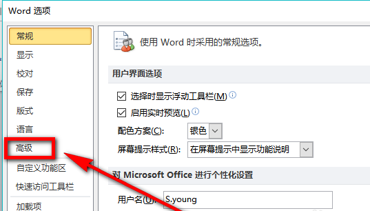 点击选项后就进入到下图所示页面,在页面左侧菜单栏中点击选择【高级】选项。