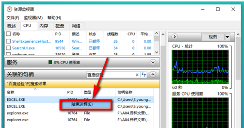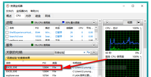 5、在搜索结果中找到与删除文件夹有关的进程名称,点击选中进程。