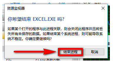 7、此时会跳出希望结束某某程序的询问窗口,点击选择【结束进程】,然后我们去删除刚才的文件就能删掉了。