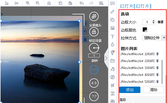 若需要替换所添加的图片,可通过“清除”和“添加”按钮进行操作,然后设置图片幻灯片的边框、边框颜色、拉伸方式和不透明度。