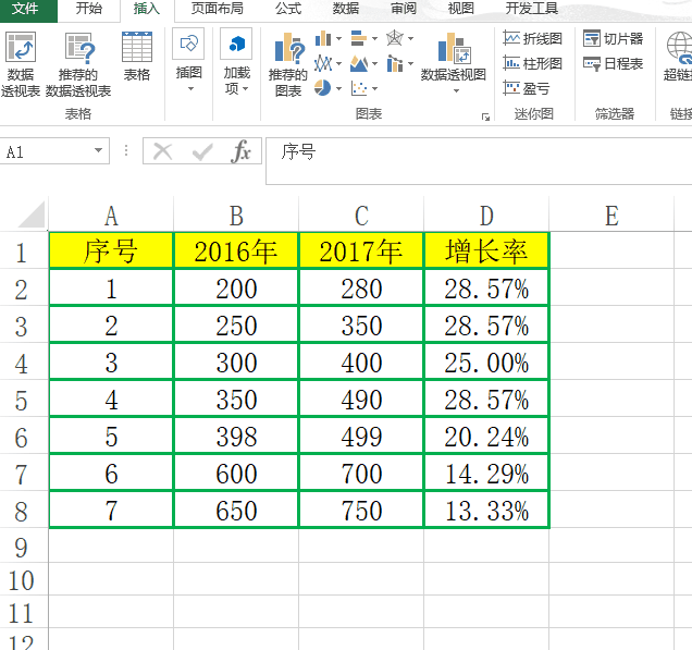 在弹窗中选择增长率——勾选——确定,