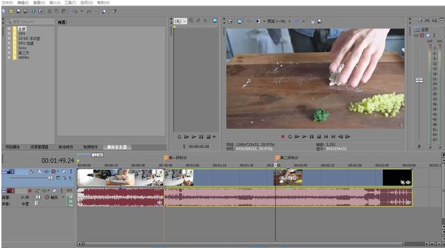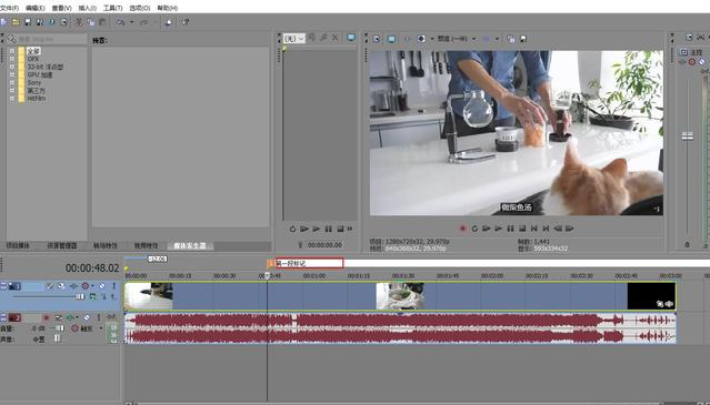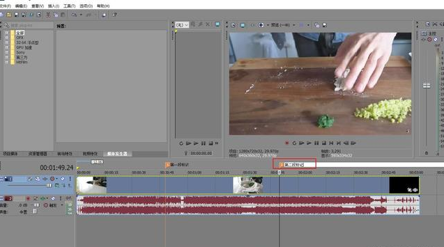 另外Vegas还有一个特别好的快捷键也非常实用,那就是Delete键,我演示一下,我标记好视频节点后鼠标选中区域
