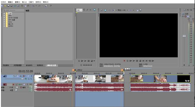 按下Delete键后,可以看到,选中的区域被删除了,这在使用Vegas剪辑中很实用。