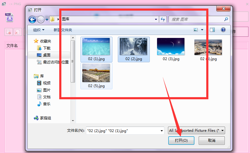 找到准备的图片文件夹位置,选择需要进行格式转换的图片,点击打开,