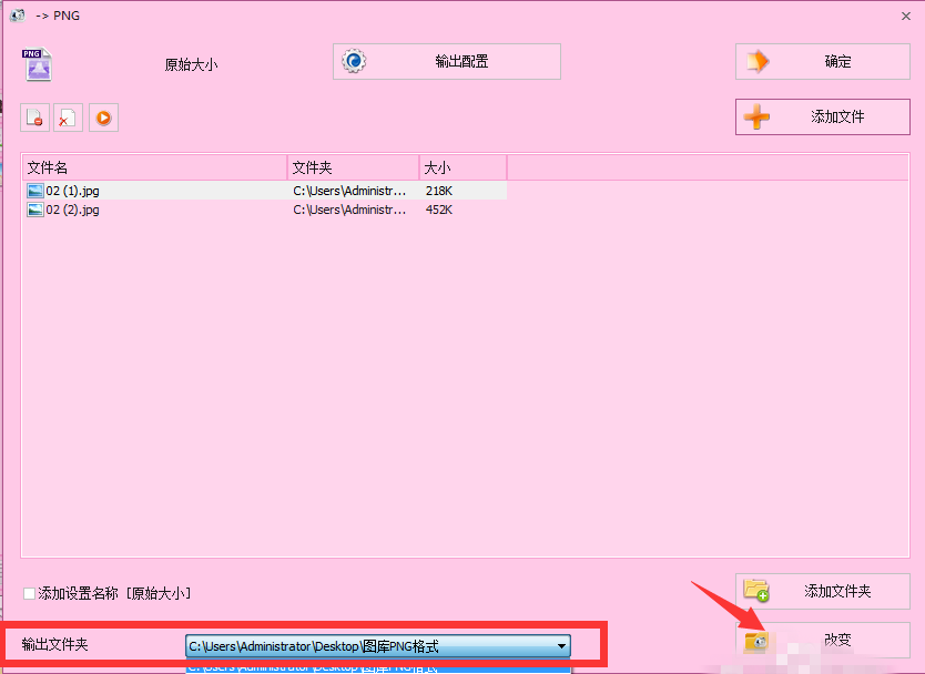 编辑完成后,回到原始编辑框,点击下面的输出文件位置,点击改变,更改存放导出的位置。