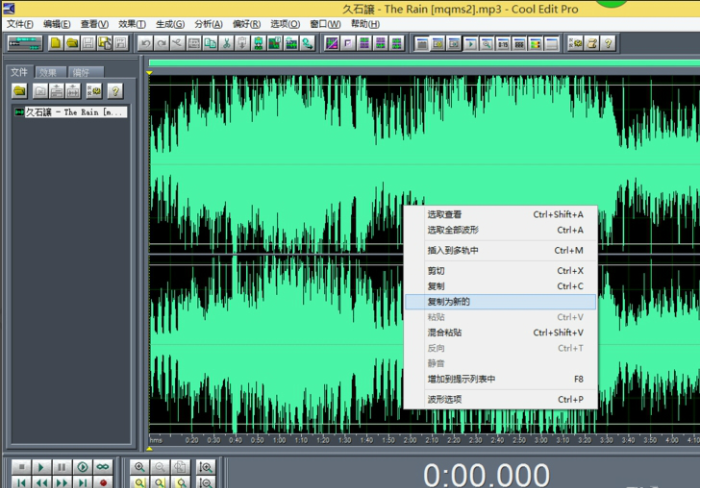 在波形处鼠标右击,弹出下拉菜单,找到”复制为新的“选项,并左键单击,之后产生另一文件。