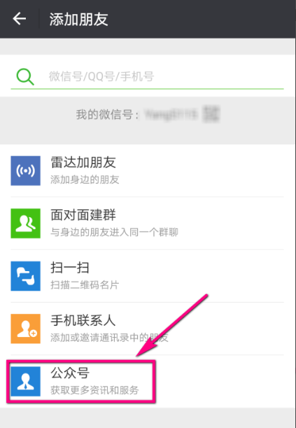 进入到朋友添加页面后,点击下方的【公众号】选项。