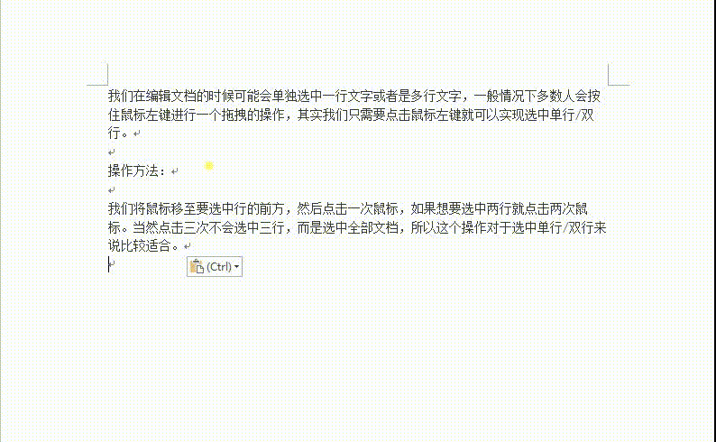 我们在编辑文档时可能会单独选中一行文字,一般情况下,多数人会按住鼠标左键进行拖拽,其实我们只需要点击鼠标左键就可以选中单行/双行。
