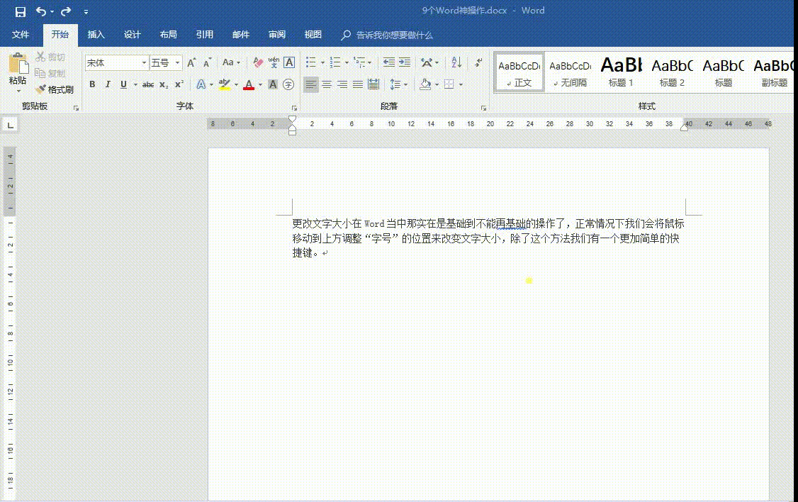更改Word中文字大小并不难,正常情况下,我们会将鼠标移动到上方调整“字号”的位置来改变文字大小,除此之外,使用快捷键更简单。