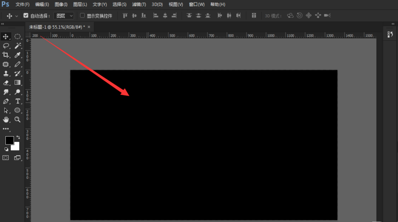 打开Photoshop软件,新建一个画布,填充黑色作为背景,