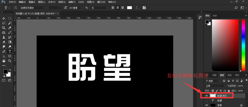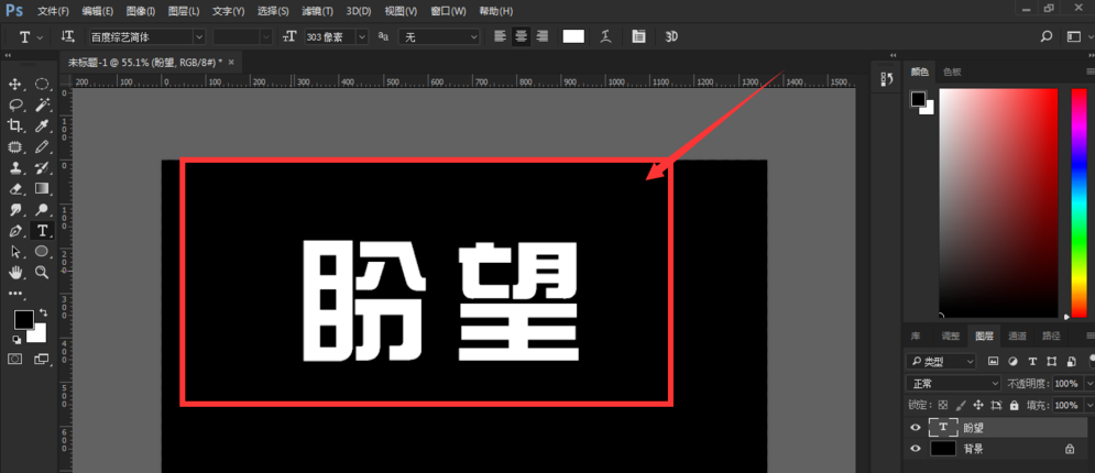 选择一个粗体文字,在画布中输入文字,颜色为白色,