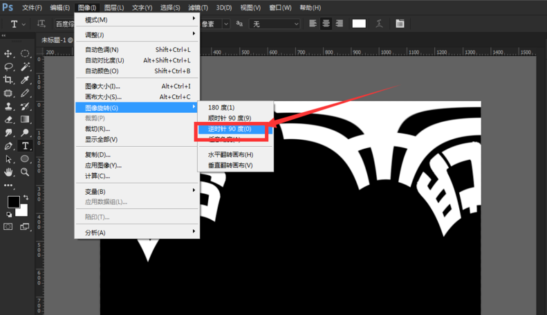 然后打开图像的旋转属性,选择逆时针90度旋转,