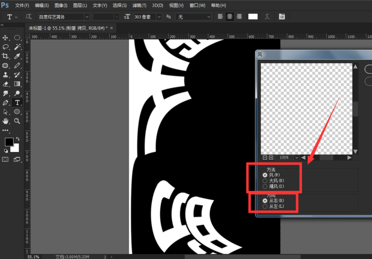 打开滤镜——风格化,设置为风——方向从右侧,添加多次风效果,