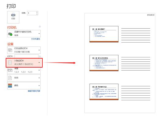 可以点击【文件】-【打印】-【整页幻灯片】-选【3张幻灯片】,同时勾选【根据纸张调整大小】,这样才能高度实现纸张利用率。