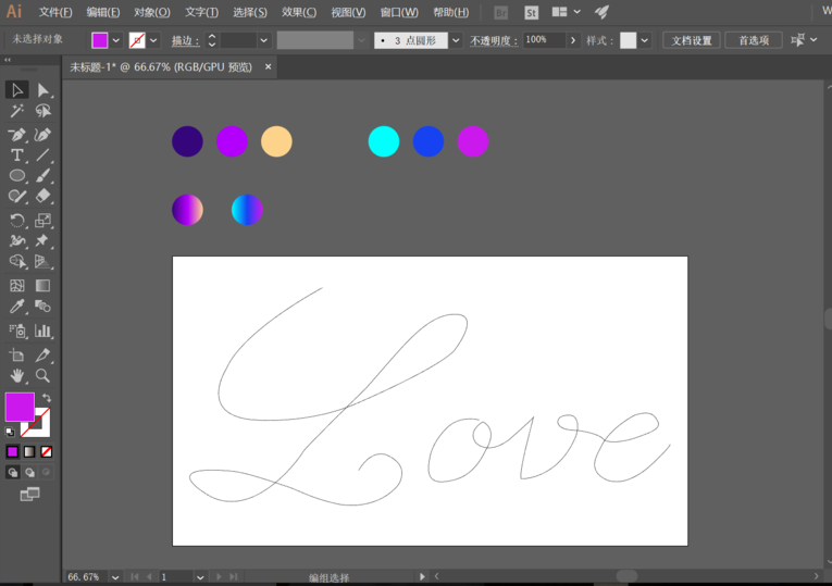 现在选中前面做好的渐变条和Love中的L,点击对象-混合-替换混合轴,效果如图,