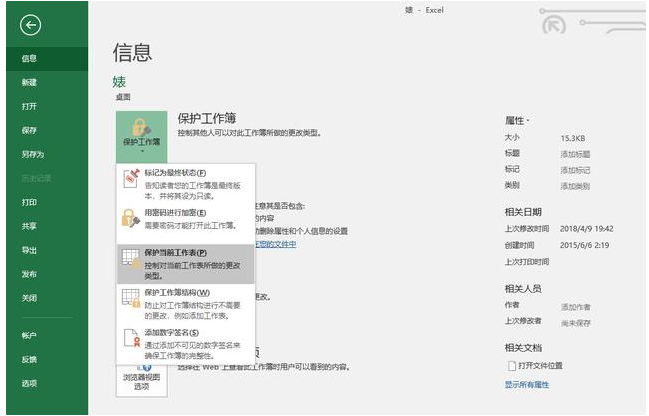 打开Excel工作表,点击左上角“文件”按钮,选择“保护工作簿”,选择“保护当前工作表”。