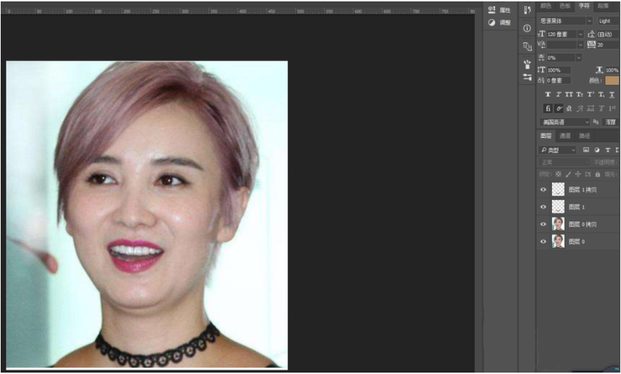 打开Photoshop,将需要去除双下巴的照片拖进PS中,按住Ctrl+J,复制一层作为备份。