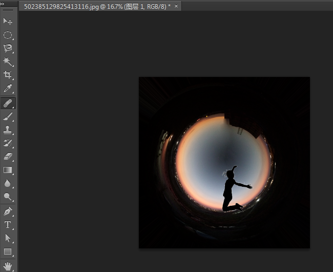 然后选择修复画笔工具来处理极坐标的边,调整合适的笔刷和硬度(硬度小一点,看起来更柔和)。