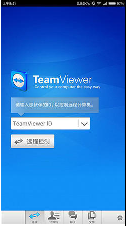 打开手机TeamViewerApp,跳过向导界面,可以看到如下图所示界面。