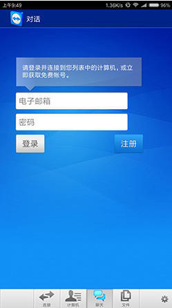 注册成功后输入账号(电子邮箱)密码点击登录即可,第一次登录会发送一条邮件到电子邮箱中,点击链接确认激活手机端就可以了。成功登录之后的界面如下图所示。而电脑端的软件大家可以直接在官网中直接进行TeamViewer下载使用。