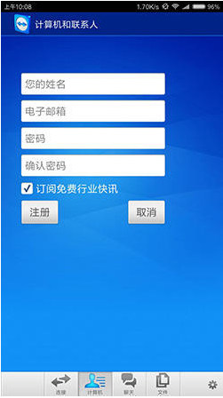 点击下方的计算机或聊天按钮,可以看到如上图所示的登录窗口,你可在此窗口中注册或登录你的账号。注册界面如下图。