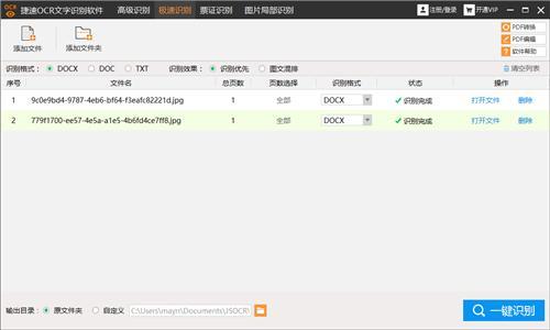 你要做的只需打开捷速OCR文字识别的【极速识别】功能,把你的图片或者文件导入进去