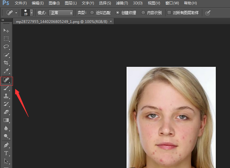 如何使用PS软件消除脸上的痘痘?