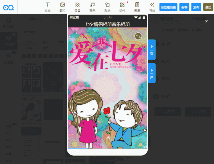 微信上那些酷炫的H5相信你一定看过吧,我们也可以制作一个具有纪念意义的H5给女朋友。H5制作并不难,有很多傻瓜工具,比如易企秀,选择好模板、就像做PPT一样简单。