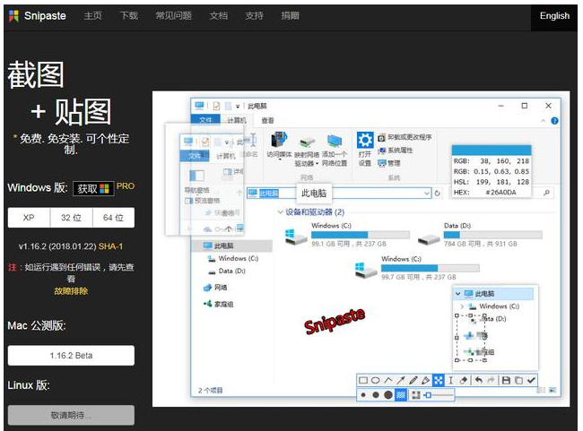 Snipaste是一款功能强大的截图工具,可以让你将截图贴回到屏幕上,软件免费安全、没有广告,不会扫描你的硬盘、更不会上传用户数据,它只做它应该做的事。
