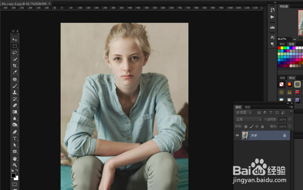 复制背景,成为图层1(快捷键ctrl+j),这样做是为了保护原素材,