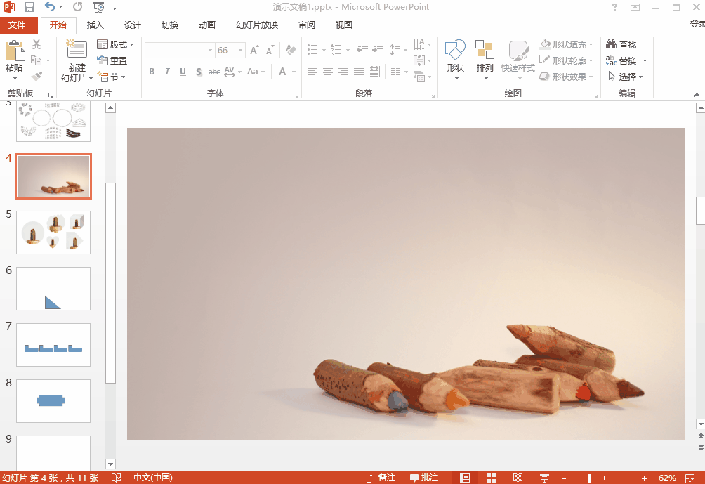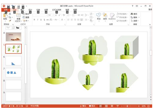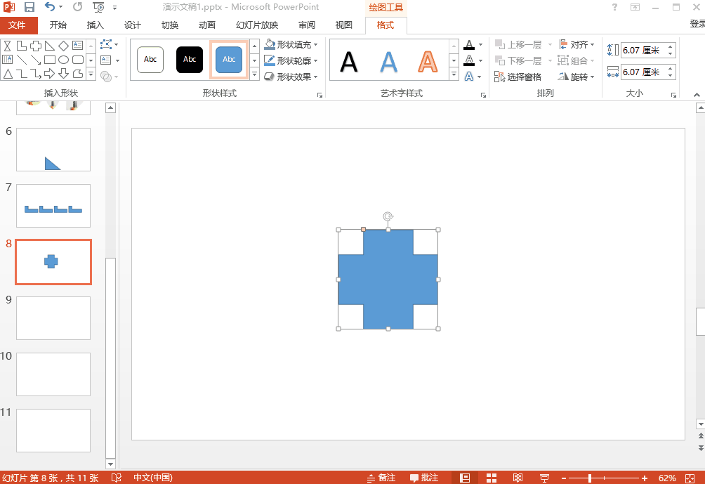 按住Shift键这时的放大缩小是等比例放大缩小的,就不怕图片、形状变形了。