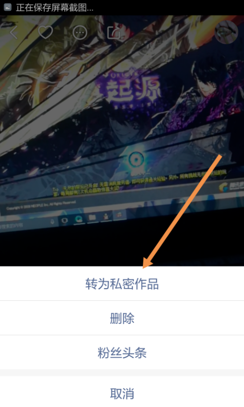 然后会弹出选项栏,我们点击“转为私密作品”选项,