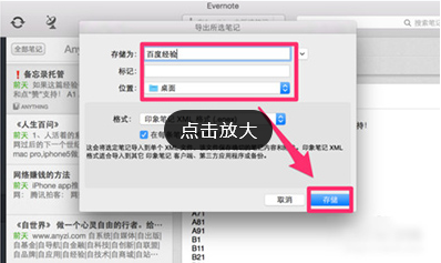 4、此时弹出来的小窗口为导入笔记的相关设置页面,在存储为栏目中输入自己想要保存的文件名称,在位置栏目中选择想要保存的路径,然后点击右下角的“存储”按钮完成笔记的导出操作。