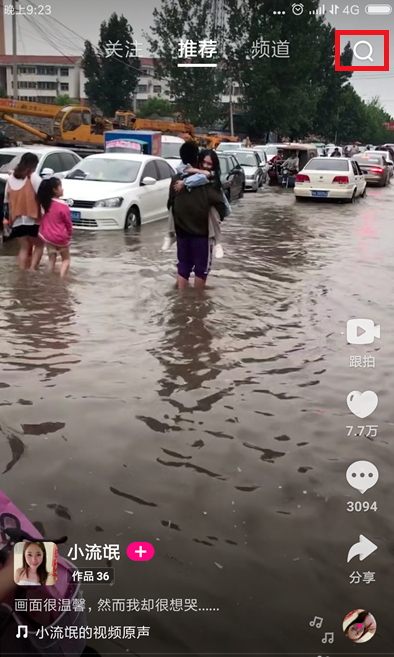 打开腾讯微视,进入视频播放界面,点击右上角的【搜索】按钮。