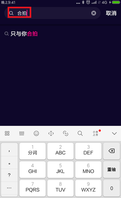 进入搜索页面,在搜索栏中输入【合拍】并点击搜索。