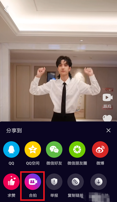 在弹出的界面中可以看到【合拍】功能,点击就能进行合拍了。