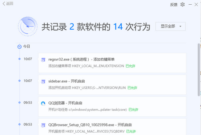 此外,用户还可以在权限雷达中查看软件权限行为记录。