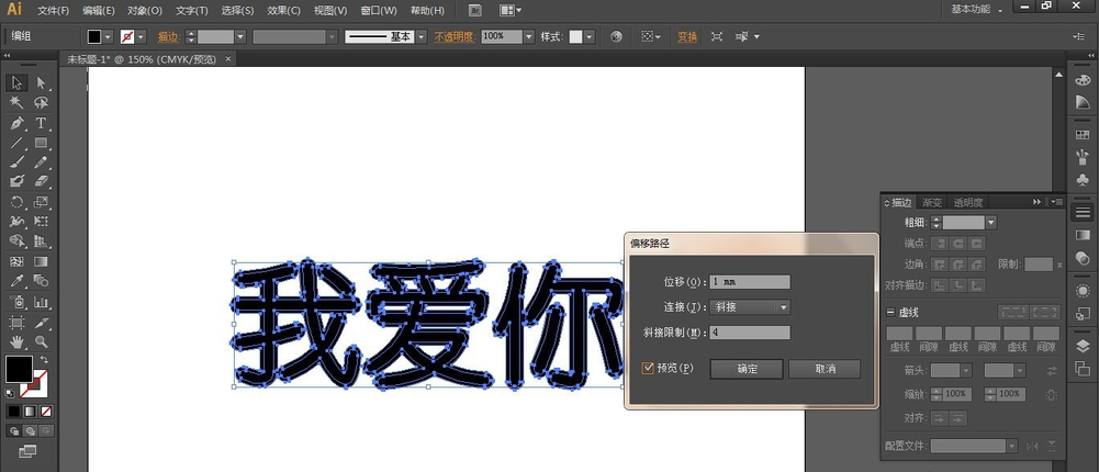 执行效果-路径-偏移路径,设置位移为1mm,这时字体变粗,最终效果如图。