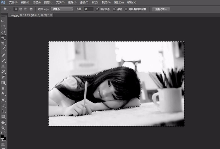 采用魔法工具进行选择,然后选择反向选取;