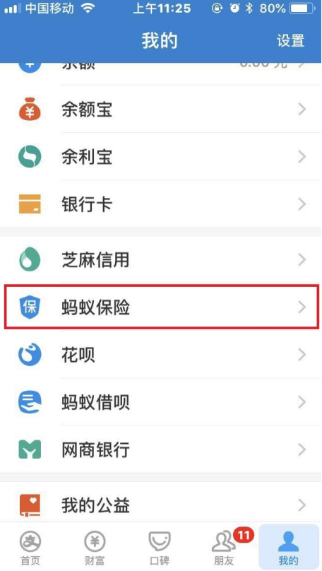 打开支付宝,点击“我的”,选择蚂蚁保险,