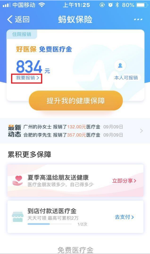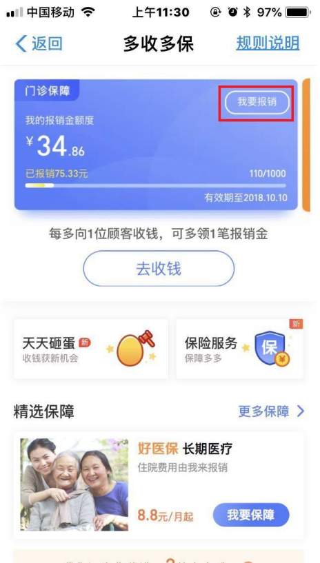 可以看到“好医保免费医疗金”、“多收多保门诊报销金”,