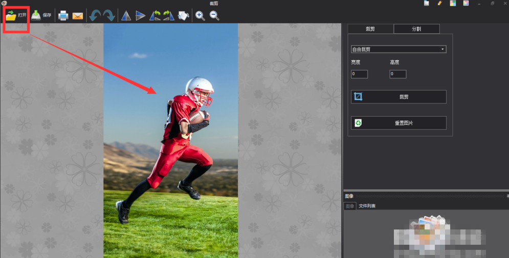 进入编辑面板,选择打开命令,将准备的素材图片导入到画板中,