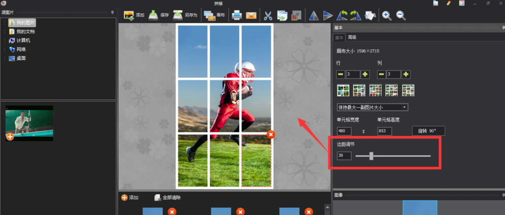 调节边距大小,可以将图片中的九宫格边框加粗减细,