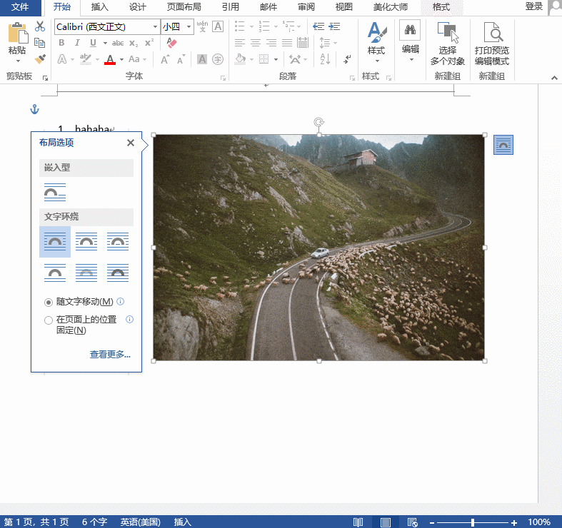 解决方法:将图片的布局选项更改为【文字环绕】。