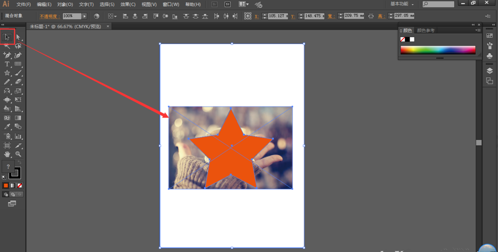然后使用选择工具,将图片和图形全部选中,如图所示,