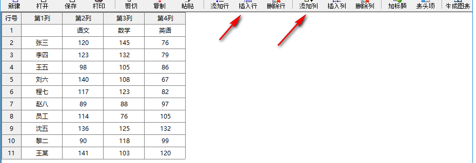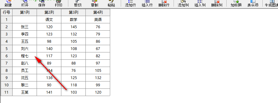10、也能对第一列的名字修改,设置为名字,设置为分数,自己安装数据输入吧