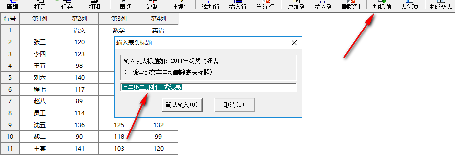 8、例如设置为“七年级二班期中成绩表”下图就是设置的效果