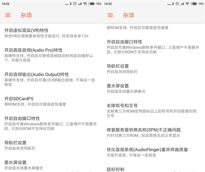 其他一些功能,可以看到连去除因无法连接Google服务出现的感叹号的功能都有
