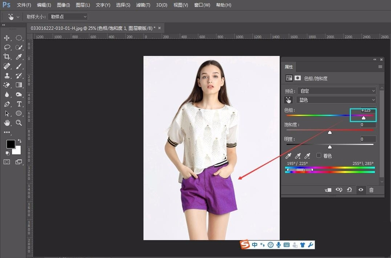调整色相范围,就可以更改衣服的颜色,如图。