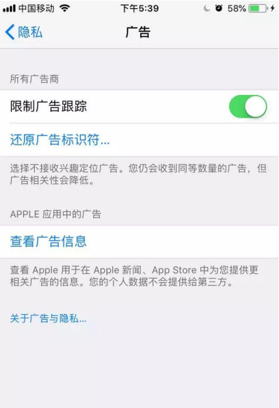 根据iPhone的功能说明,广告跟踪是iPhone根据用户定位进行广告推送的功能,试问,有多少人喜欢看广告呢?
